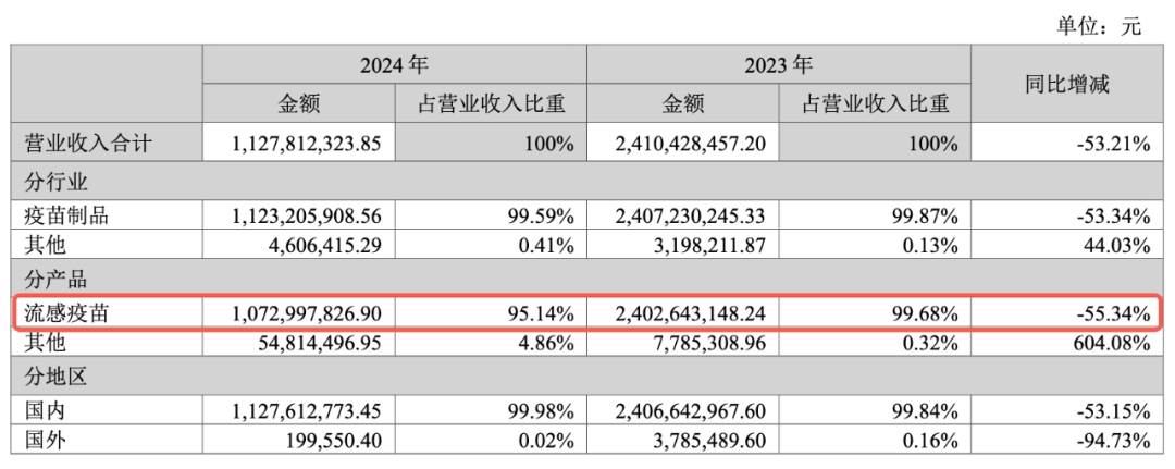 就拿华兰生物来说,2023 年,流感疫苗的营收占华兰总营收的 99.68%。[11]流感疫苗这块蛋糕,华兰是一点也不敢松口。