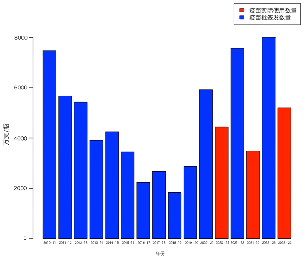 而由于流感疫苗需要每年根据流行毒株更新,具有极强的时效性,打不完就得扔。因此,近年来疫苗报废率一度接近 40%。[16-17]