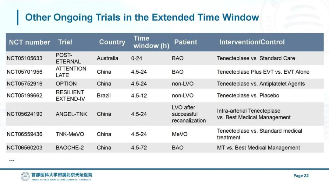 另外,除了已经公布结果的 TRACE-III 和 TRACE-5 研究,王拥军院士团队还在超 24 小时时间窗内,开展了前循环大血管闭塞静脉溶栓 TRACE-BEYOND 研究。[19]