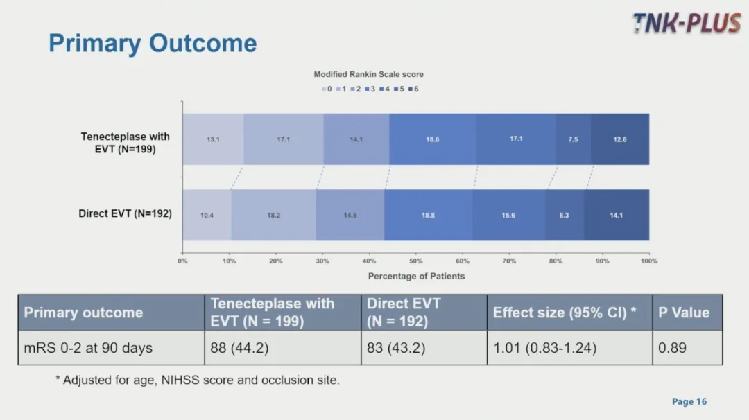 TNK-PLUS 研究,是一项多中心、前瞻性、开放标签、盲终点的 3 期 RCT,目的是回答机械取栓的桥接问题——对于发病 4.5~24 小时的大脑中动脉闭塞的患者,是直接取栓好,还是取栓前先用替奈普酶桥接好?[18]