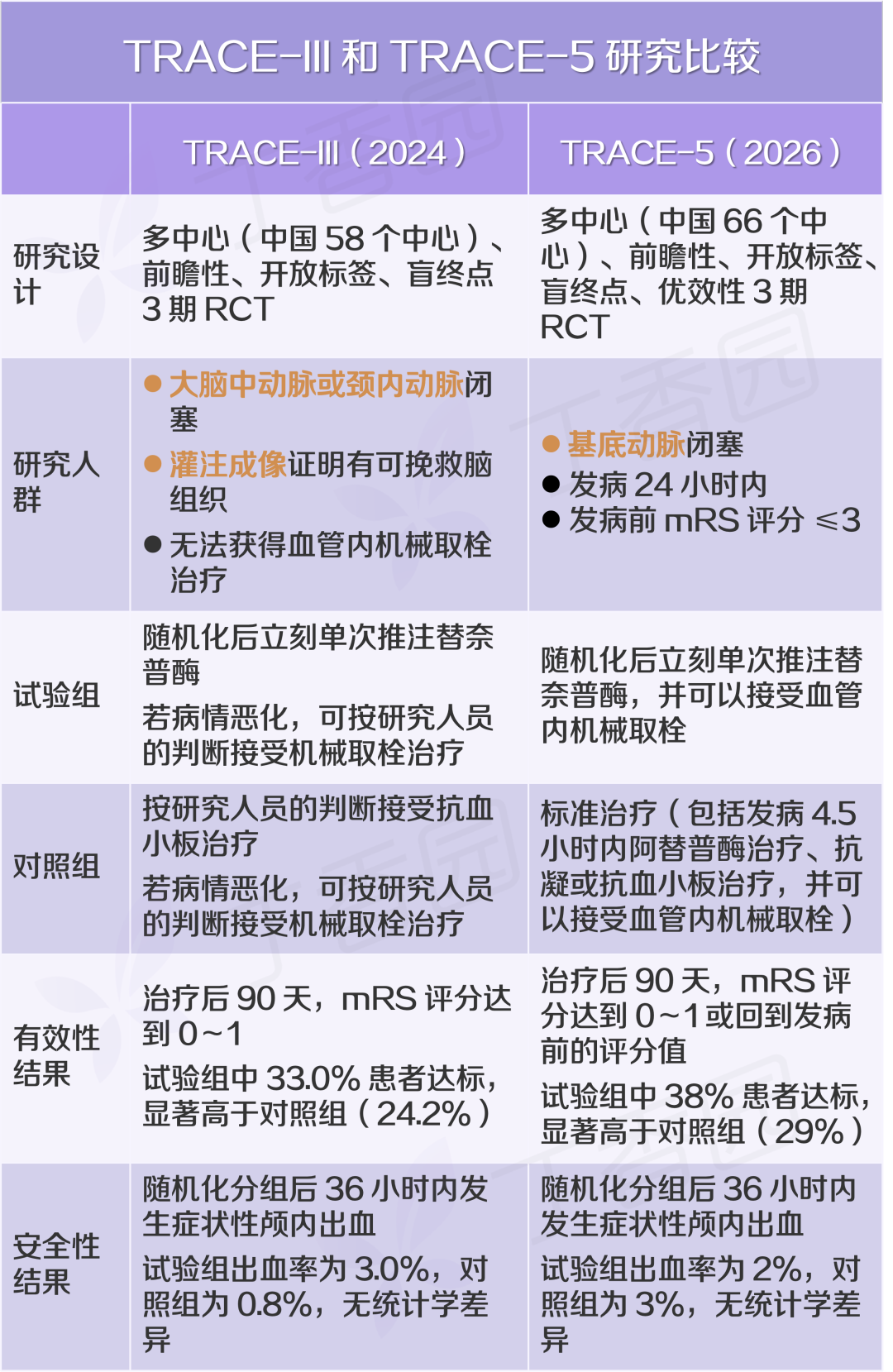 ●TRACE-III 关注前循环闭塞,而 TRACE-5 则关注后循环闭塞;
